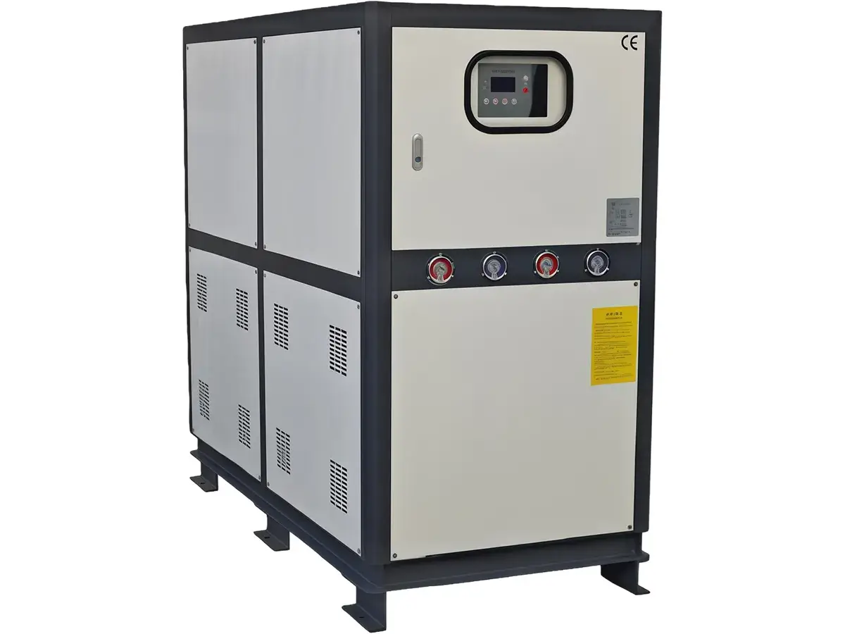 - Чиллер оснащен импортным регулятором температуры с ЖК-экраном, который поддерживает точность температуры воды в пределах ±1°C в диапазоне 5°C-35°C. Встроенная система самодиагностики автоматически определяет неисправности, отображает состояние работы чиллера в реальном времени и выводит предупреждения.